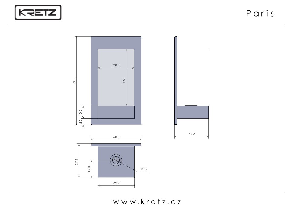 Kompaktní biokrb KRETZ Paris se šířkou 400 mm, nerezovým topeništěm a rovným prosklením nabízí decentní výkon 1,6 kW.