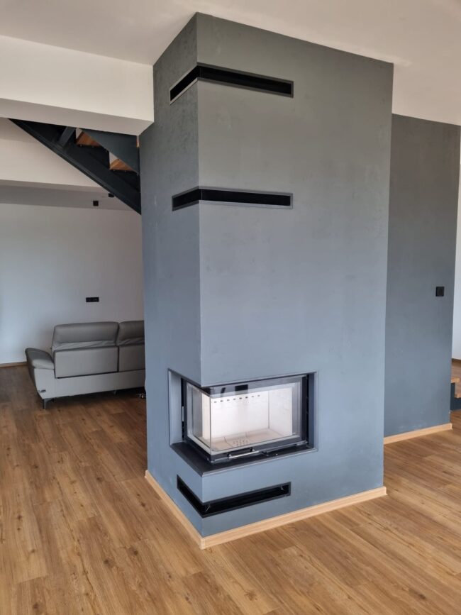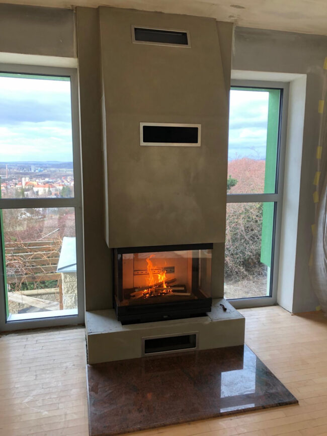 Obestavba Teplovzdušné krbové vložky Sigma 70V R. Termín realizace: 04/2024 Místo realizace: rodinný dům, Lipůvka.