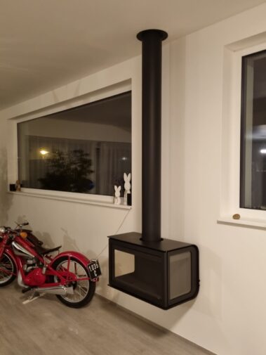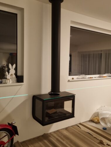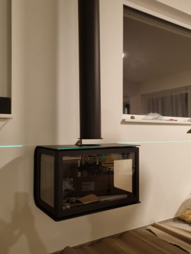 Stavba krbu Rocal City včetně designového vývodu komínu z místnosti.